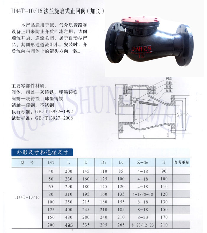 H44T-10/16法蘭旋啟式止回閥(加長)