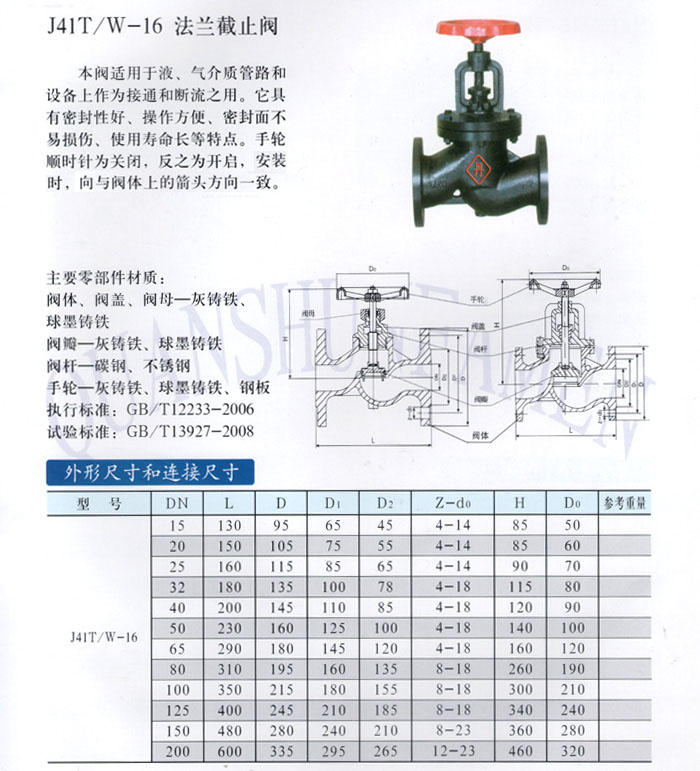 Z44(41)T/W-10/16 明桿法蘭閘閥